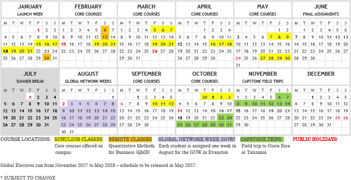 After the January Launch Week, you come to campus on average every three weeks to work on the business fundamentals and your leadership skills. In between, there is a month-long summer break and the Global Network Week at Kellogg, where you mingle in highly interactive courses with students from all the partner schools, many of whom you will meet again during your electives. Once you complete the core courses, you go to either Costa Rica or Tanzania to apply your knowledge and skills to make an immediate impact in a social innovation project.